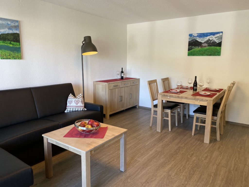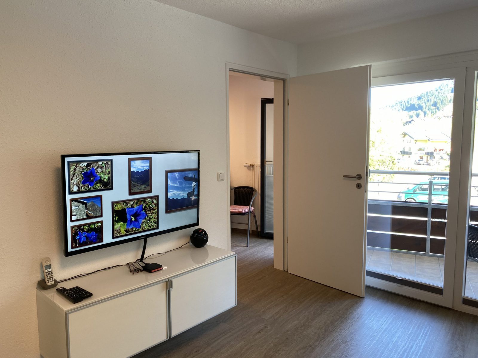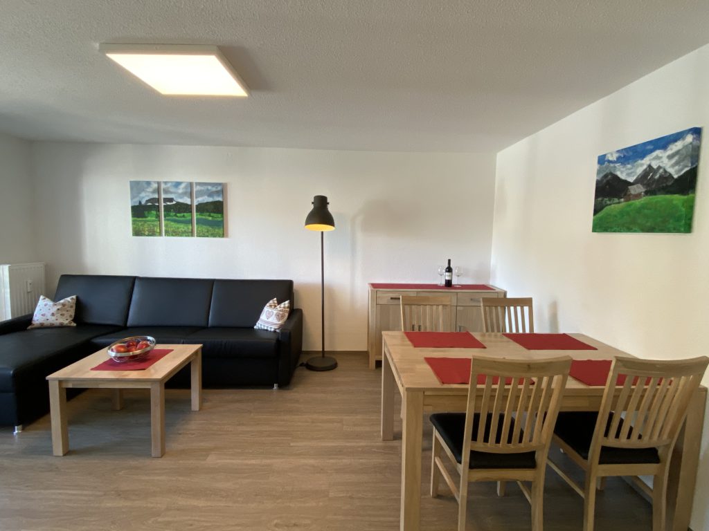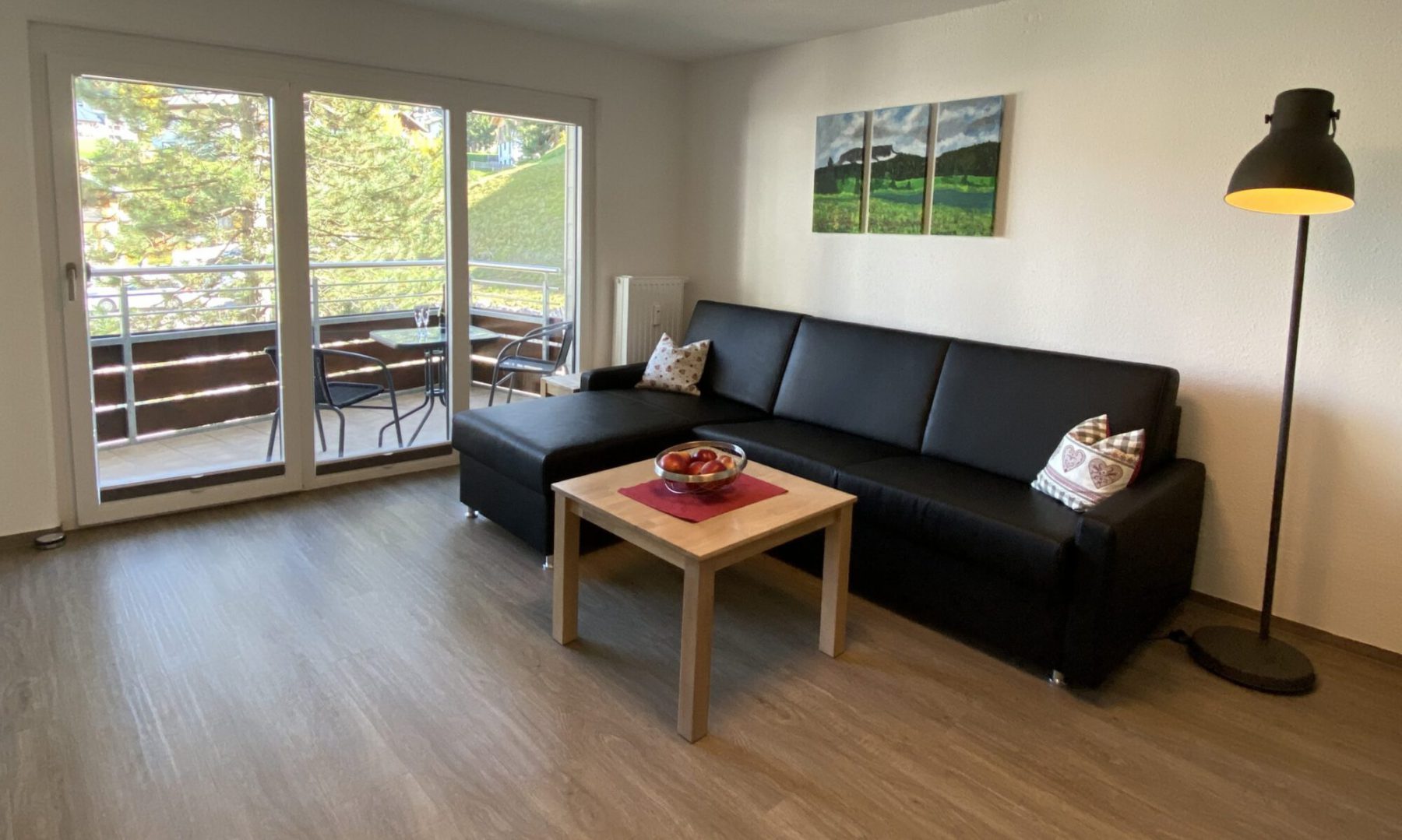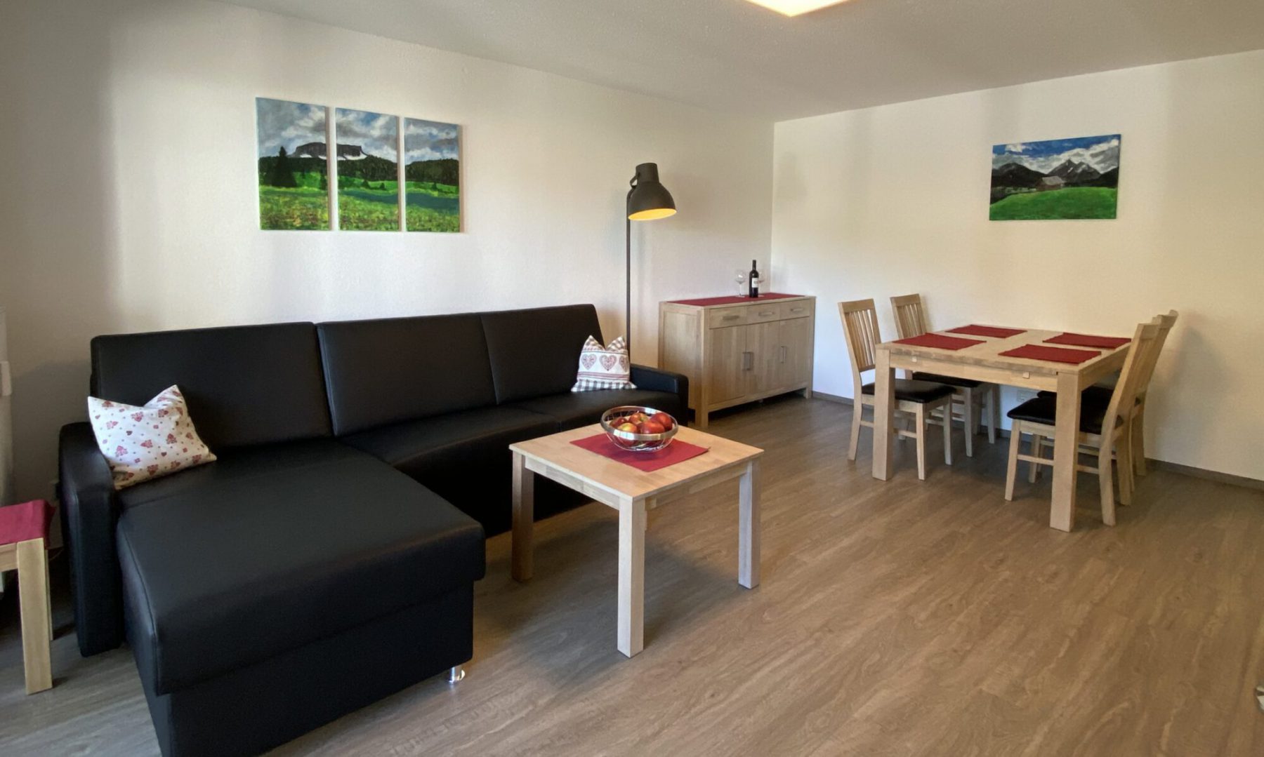 Das Appartment hat ca. 46 qm, ist geeignet für 2 – 4 Personen und verfügt über 1 Schlafzimmer, 1 Badezimmer, eine kleine Küche und ein geräumiges Wohnzimmer mit Schlafsofa für 2 Personen sowie einen Balkon. Es befindet sich im ersten Stock, direkt über dem Eingang des Hotels. Vom Balkon aus kann man das Fellhorn und die Kanzelwand sehen und hat einen wunderschönen Blick Richtung Oberstdorf.