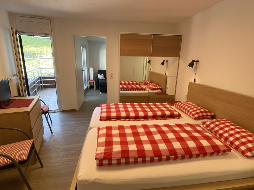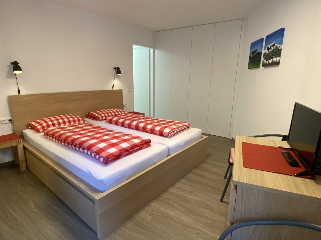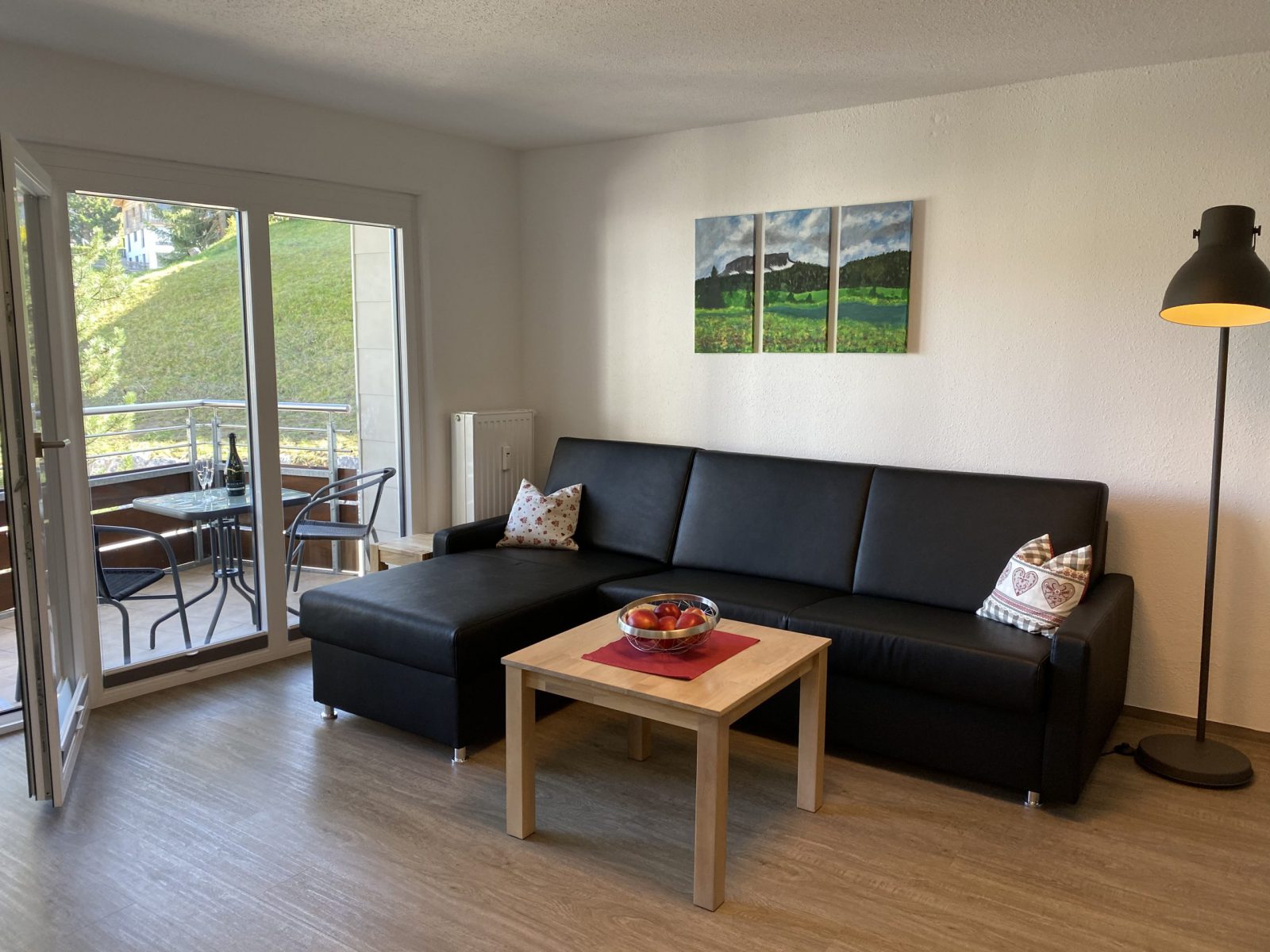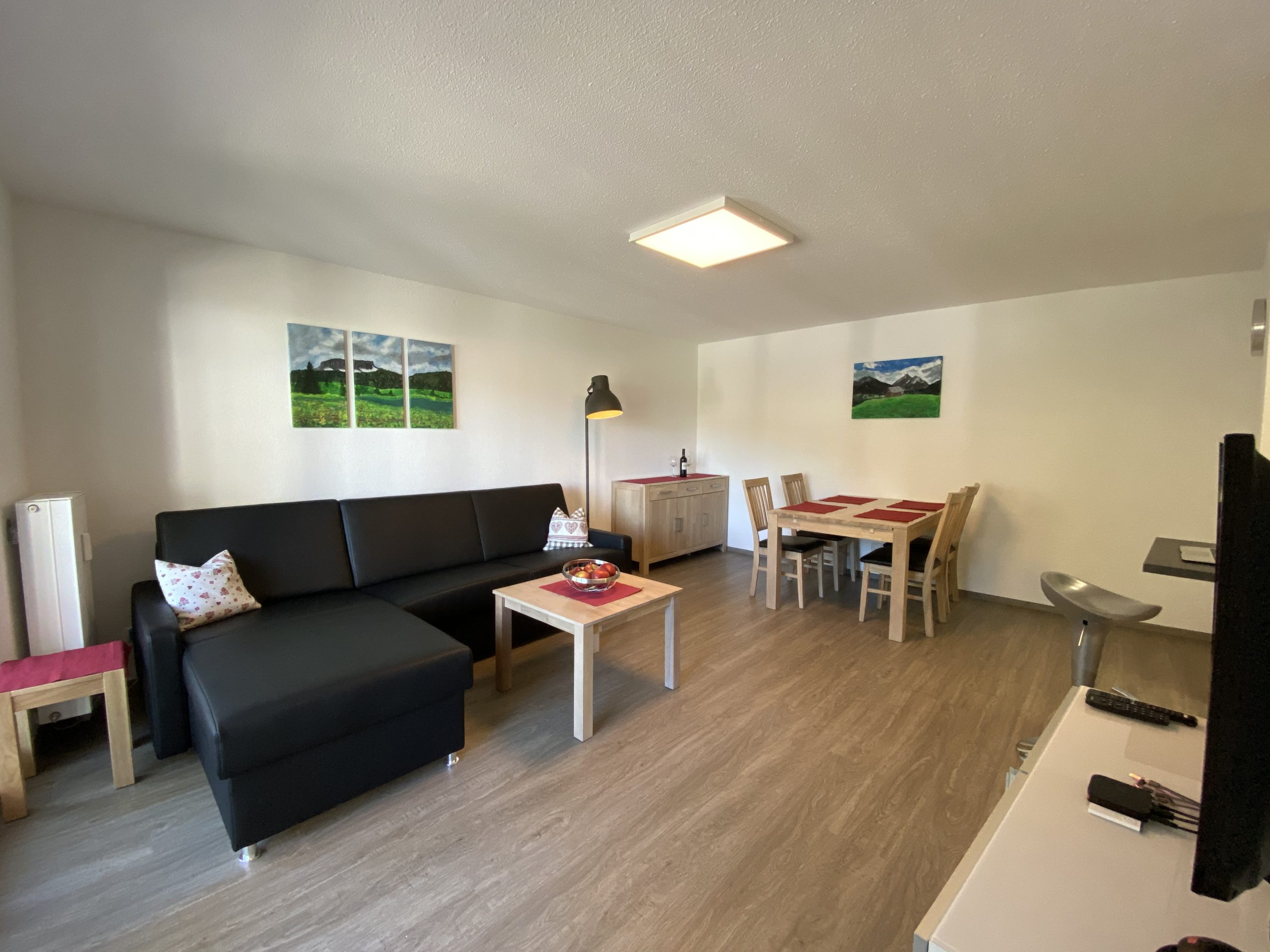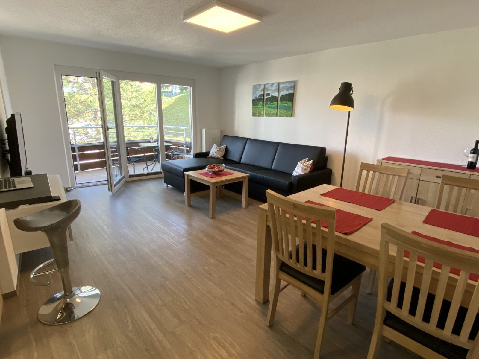 Das Appartment hat ca. 46 qm, ist geeignet für 2 – 4 Personen und verfügt über 1 Schlafzimmer, 1 Badezimmer, eine kleine Küche und ein geräumiges Wohnzimmer mit Schlafsofa für 2 Personen sowie einen Balkon. Es befindet sich im ersten Stock, direkt über dem Eingang des Hotels. Vom Balkon aus kann man das Fellhorn und die Kanzelwand sehen und hat einen wunderschönen Blick Richtung Oberstdorf.