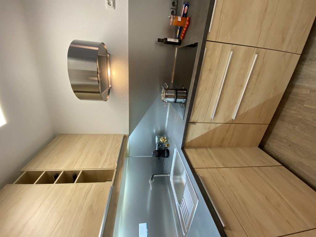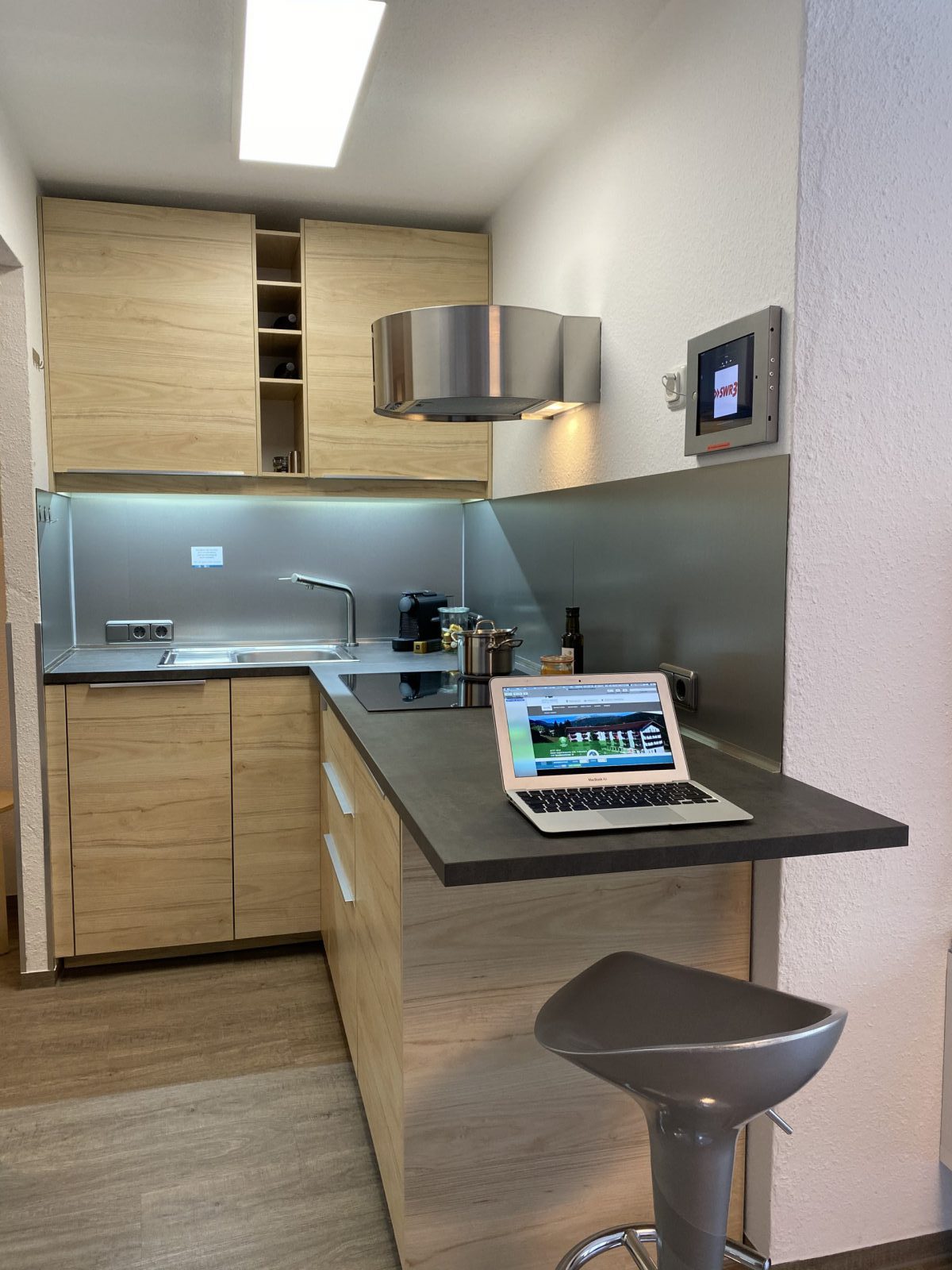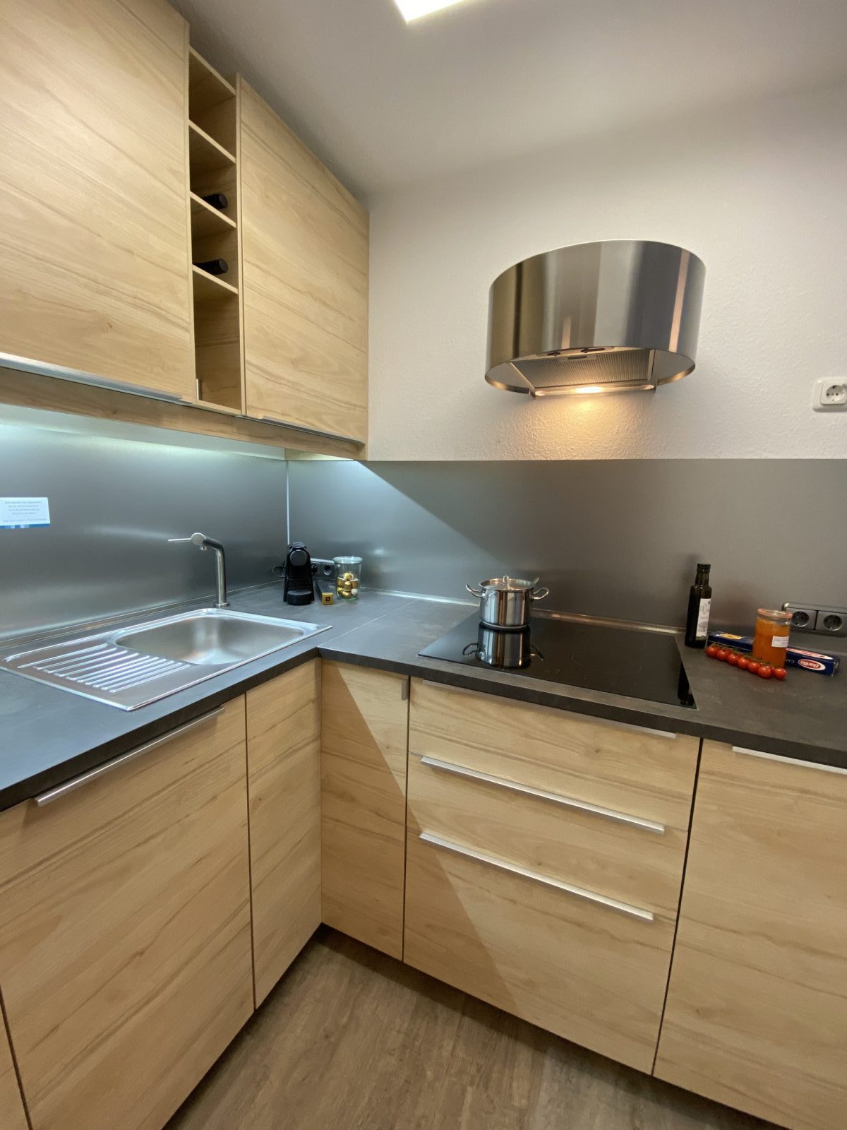- moderne Küche mit Spülmaschine, Cereankochfeld mit vier Platten, Kühlschrank