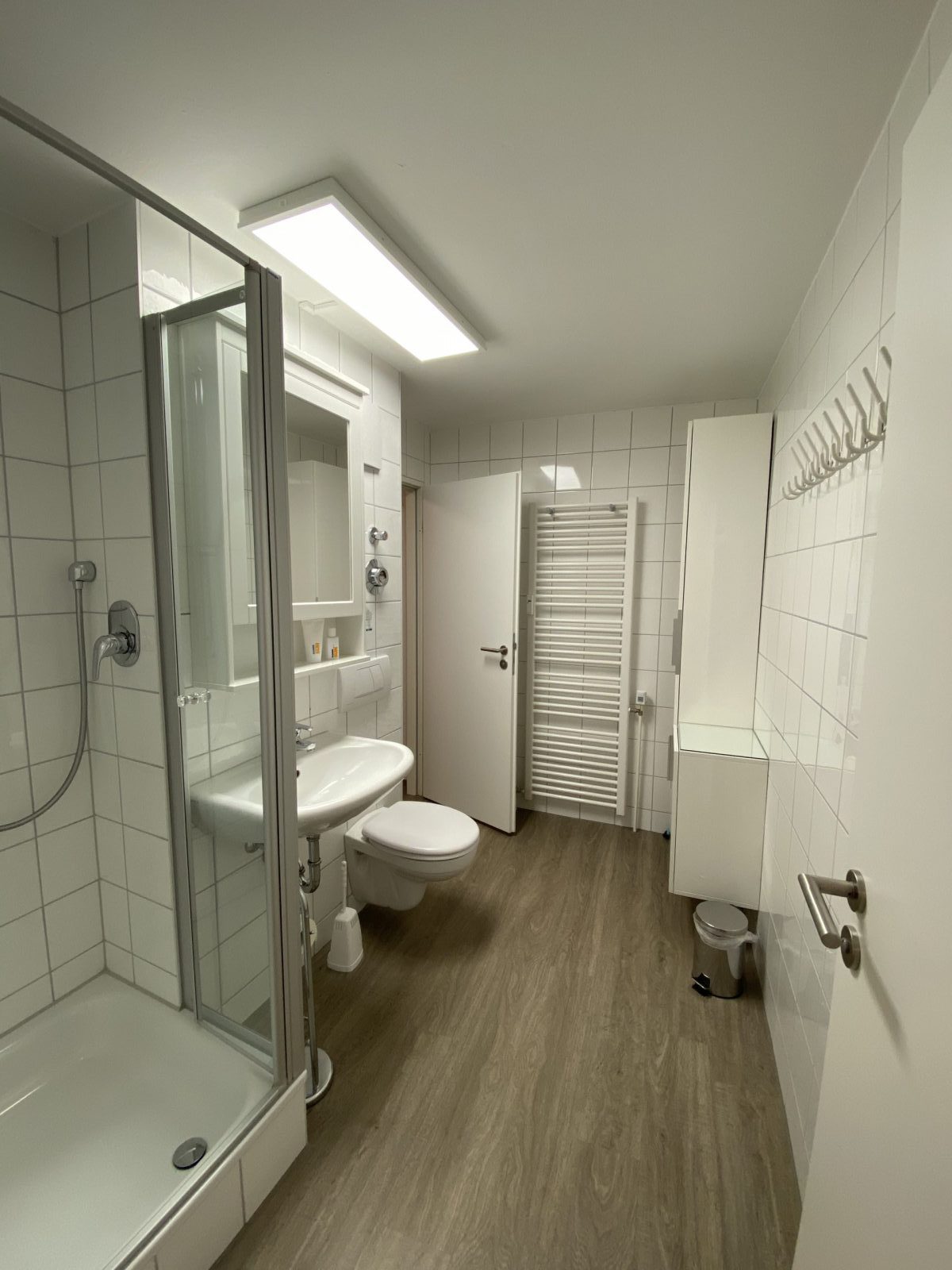 - modernes Badezimmer mit ausreichend Ablagefläche und Stauraum
